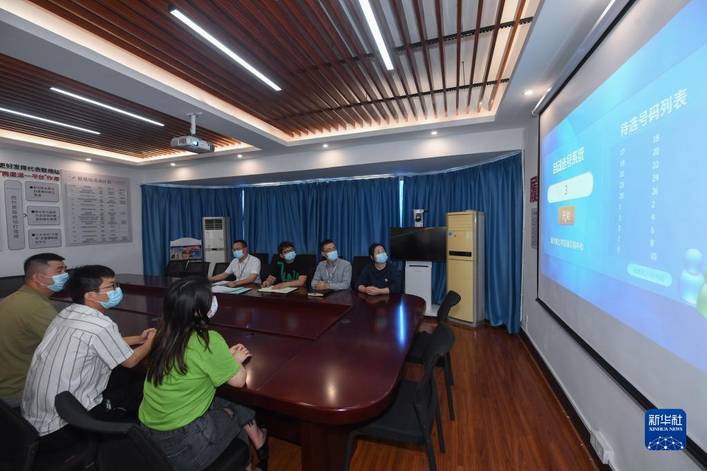 5月24日,织里镇乔溇村一处工程摇号现场,工作人员在从施工单位备选库中抽取入围单位。