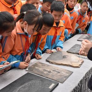 5月24日,在贵州省惠水县惠民小学,贵州省地质博物馆工作人员带领小学生进行VR科普互动体验。