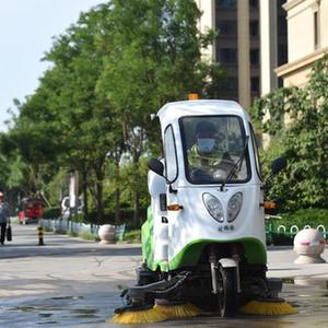5月24日,石家庄市高新技术产业开发区棚户区改造新建小西帐东苑小区的物业工人在清扫道路。