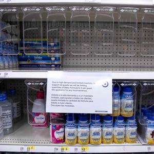 5月24日,在美国纽约市布鲁克林区,一家超市的婴幼儿奶粉货架出现缺货。