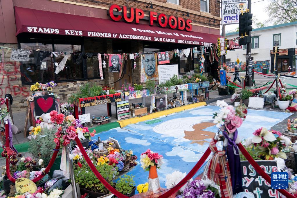 这是5月22日在美国明尼苏达州明尼阿波利斯市拍摄的弗洛伊德广场。