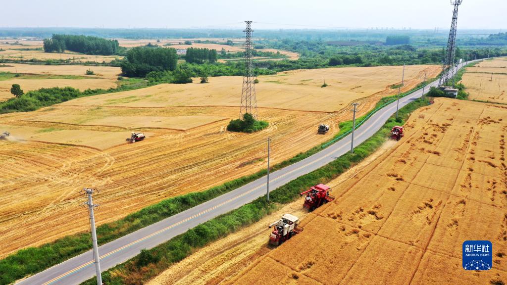 “三夏”时节,在农业大省安徽,各地麦收逐渐进入高峰期。在合肥市蜀山区小庙镇,农民操作大型收割机趁着晴好天气收割小麦,江淮大地一派丰收景象。