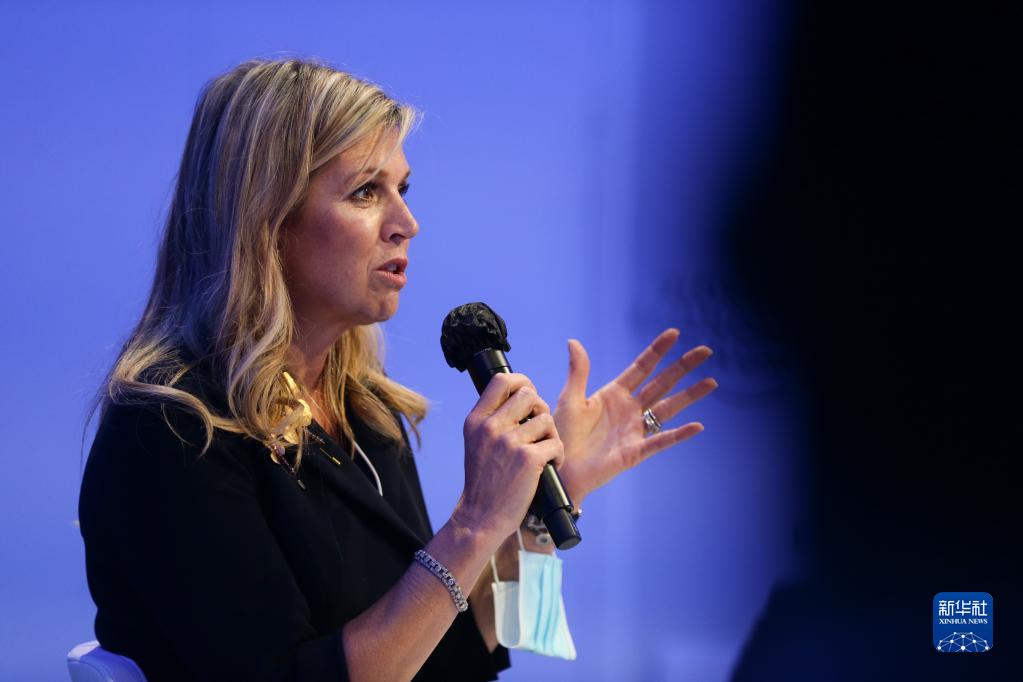 5月24日,在瑞士达沃斯,荷兰王后马克西玛出席世界经济论坛2022年年会。