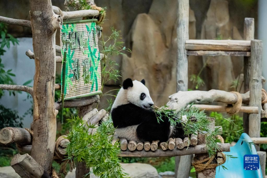 中国旅马大熊猫“靓靓”生下的第三只宝宝25日在马来西亚国家动物园正式取名为“升谊”。