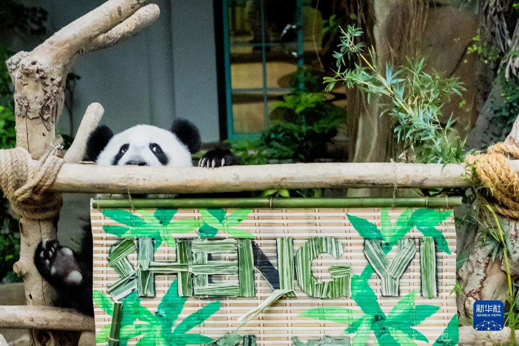 中国旅马大熊猫“靓靓”生下的第三只宝宝25日在马来西亚国家动物园正式取名为“升谊”。