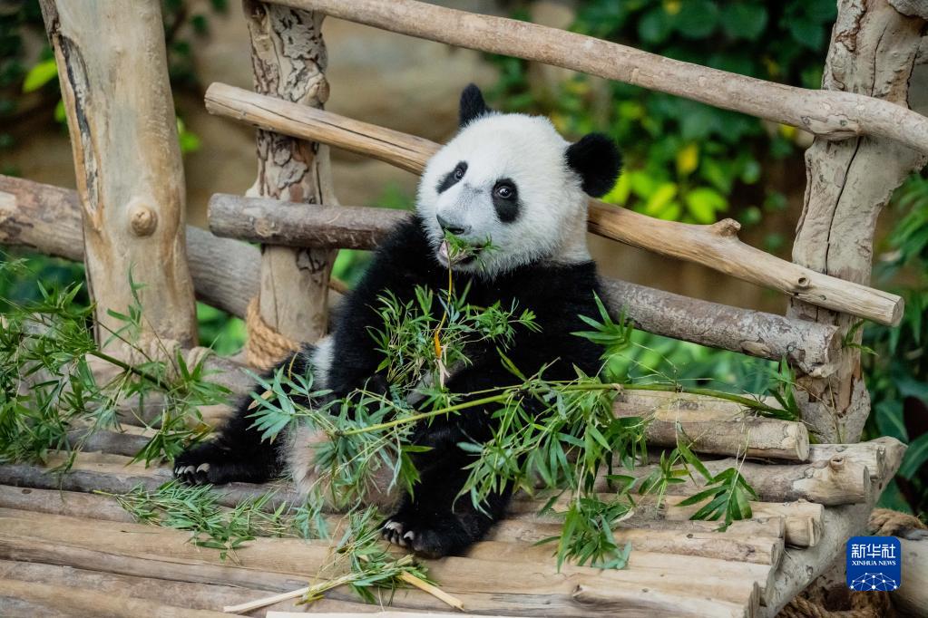 中国旅马大熊猫“靓靓”生下的第三只宝宝25日在马来西亚国家动物园正式取名为“升谊”。