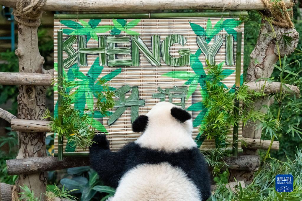 中国旅马大熊猫“靓靓”生下的第三只宝宝25日在马来西亚国家动物园正式取名为“升谊”。