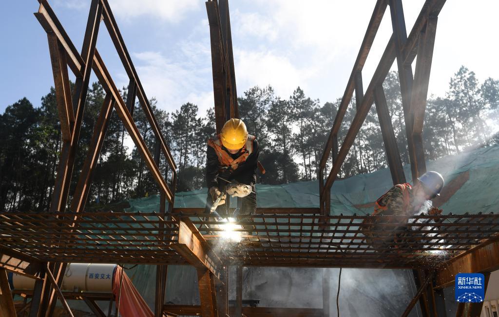 5月25日,工人在苍昭高速公路昭平隧道施工现场工作。