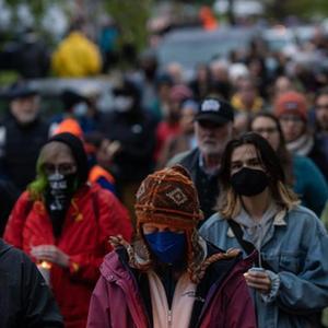 5月25日,在美国明尼苏达州明尼阿波利斯市,人们参加哀悼活动,纪念弗洛伊德遇害两周年。