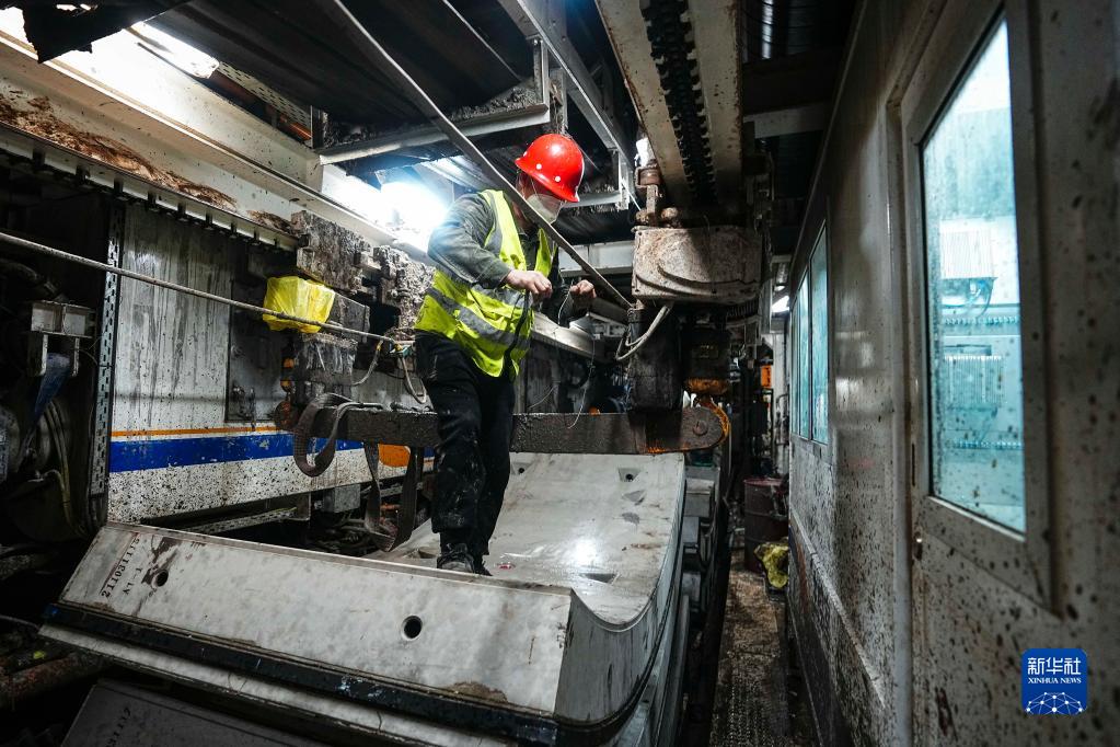 5月26日,工人在长春地铁6号线工程现场施工作业。