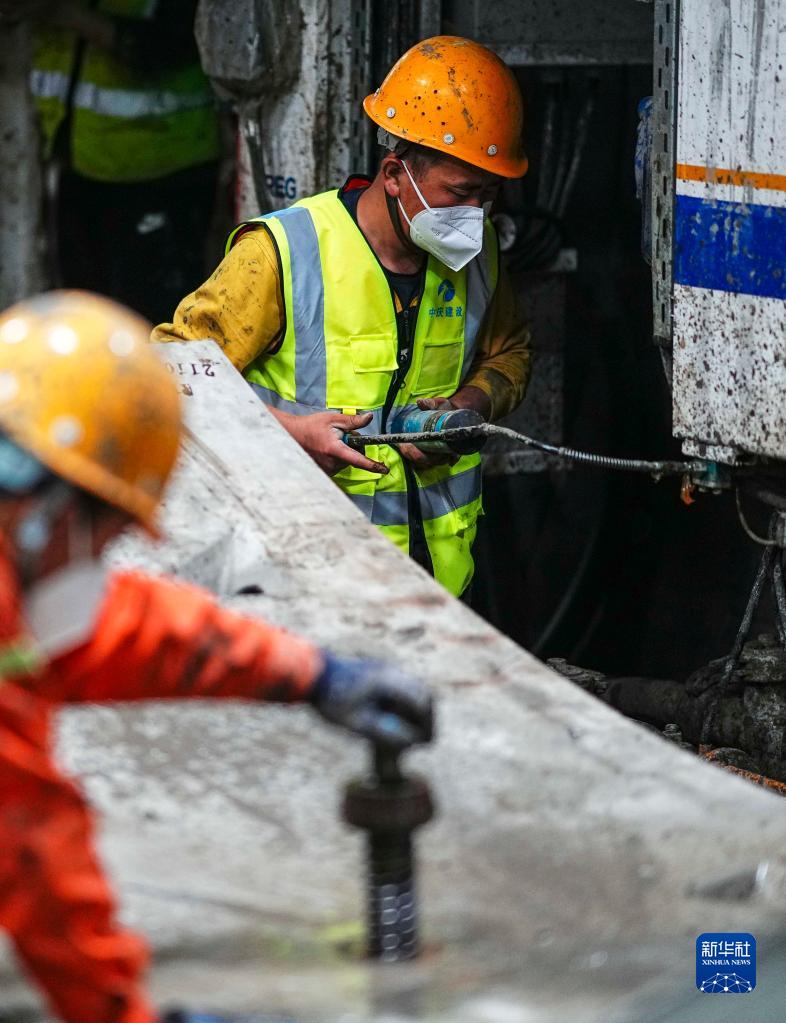 5月26日,工人在长春地铁6号线工程现场施工作业。