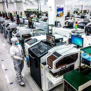 5月26日,在安徽省合肥经济技术开发区的合肥通富微电子有限公司,员工在装片生产线上作业。