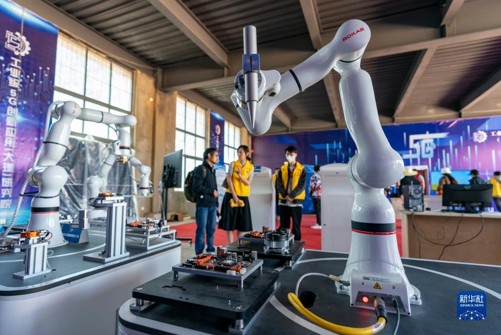 这是在工业级5G创新应用(大理)研究院内拍摄的柔性机器人(5月26日摄)。