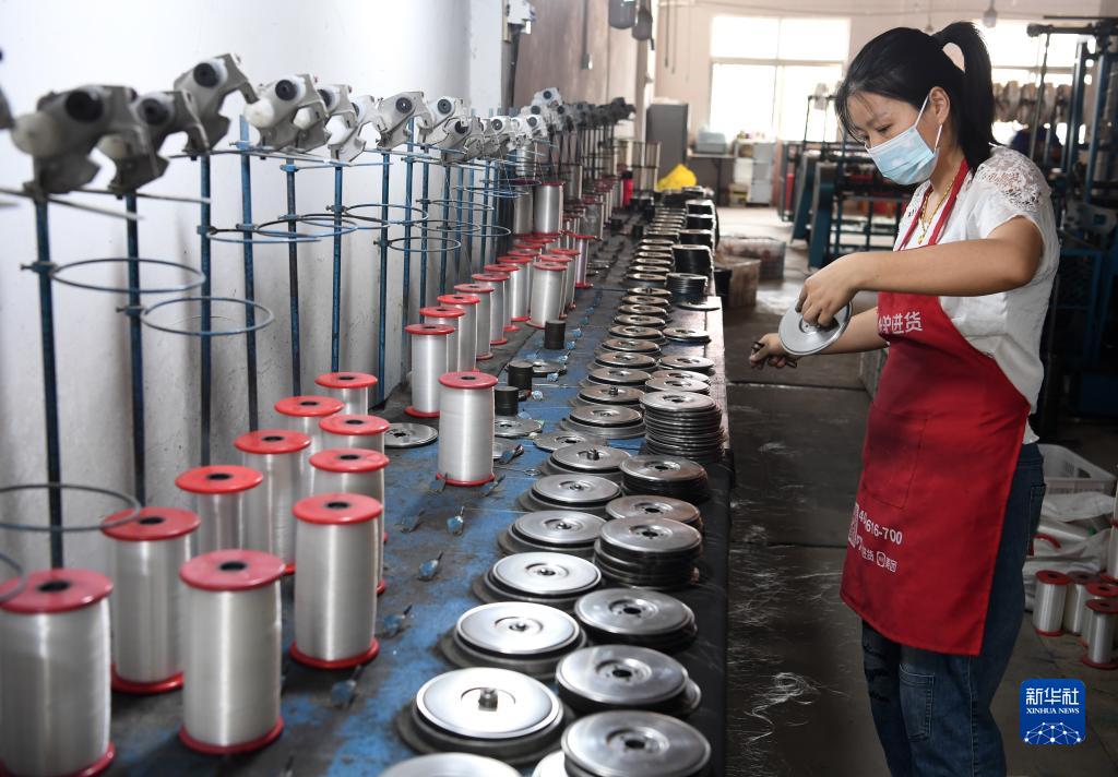 5月26日,工人在巢湖市槐林镇一家渔网生产企业内忙碌。