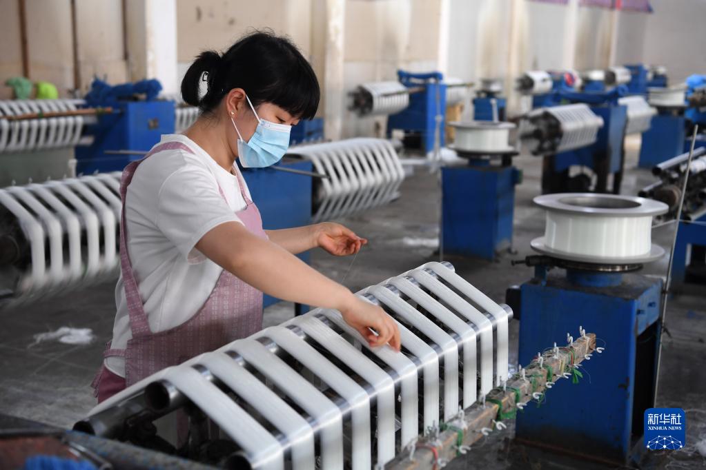 5月26日,工人在巢湖市槐林镇一家渔网生产企业内忙碌。
