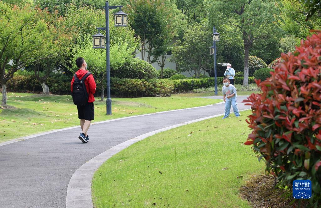5月27日,市民在位于上海市闵行区的莘庄梅园内散步休闲。