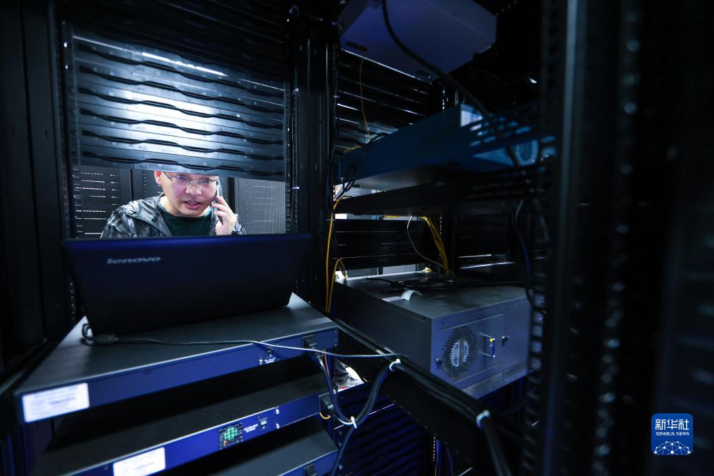 5月27日,工作人员在贵州大学省部共建公共大数据国家重点实验室算力中心调试设备。