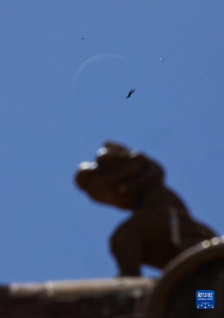 这是5月27日中午在北京故宫附近拍摄的“金星伴月”天象。