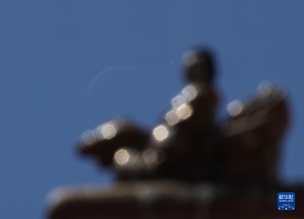 这是5月27日中午在北京故宫附近拍摄的“金星伴月”天象。