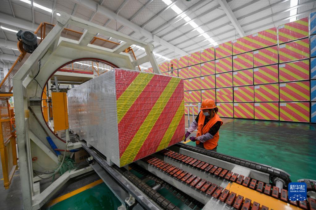 5月27日,在隆化县泰山石膏承德有限公司,工人在生产车间忙碌。