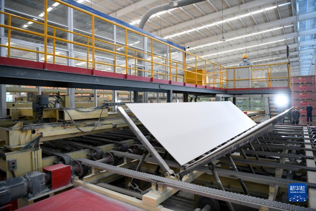 5月27日,在隆化县泰山石膏承德有限公司,工人在生产车间忙碌。