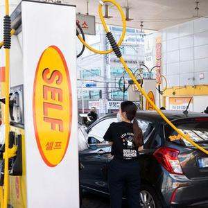5月27日,市民在韩国首尔一家自助式加油站加油。