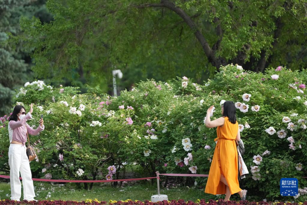 近日,哈尔滨太阳岛风景区内的牡丹花竞相开放,吸引市民游客前来观赏拍照。