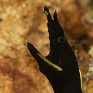 在分界洲岛海域,五彩鳗在海底觅食(5月26日摄)。