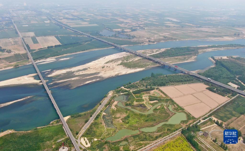 这是4月26日拍摄的河南黄河湿地国家级自然保护区孟津段景色(无人机照片)。