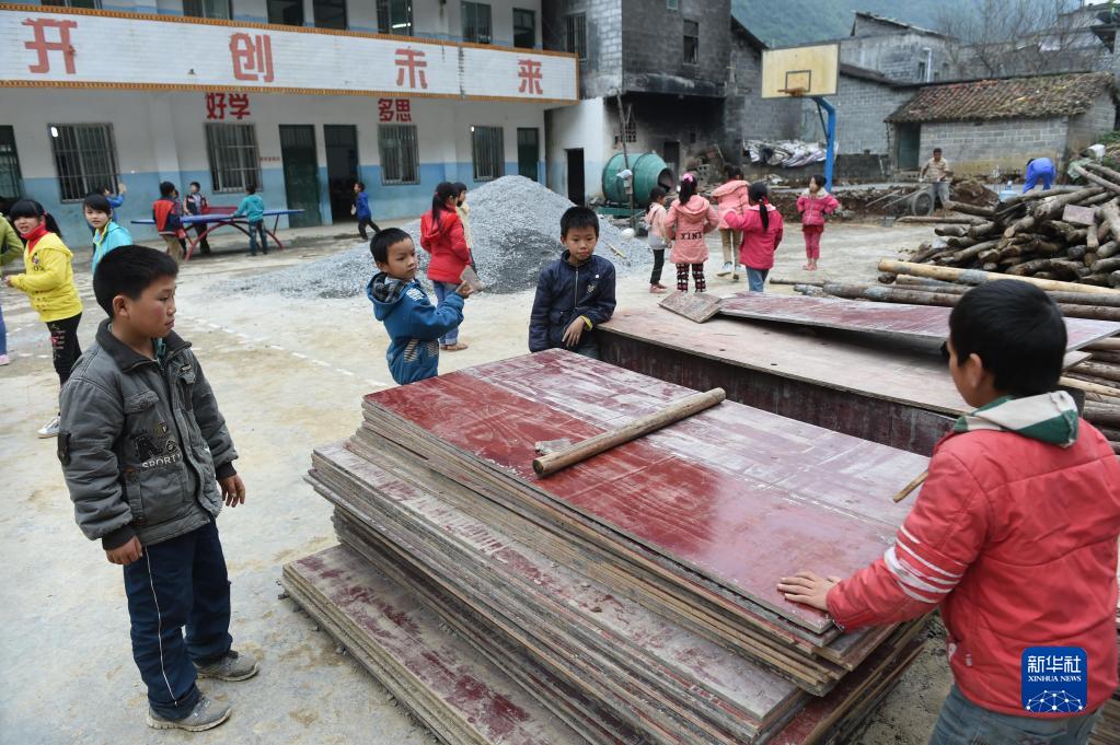 2014年11月19日,渔洞小学的孩子们在打乒乓球。