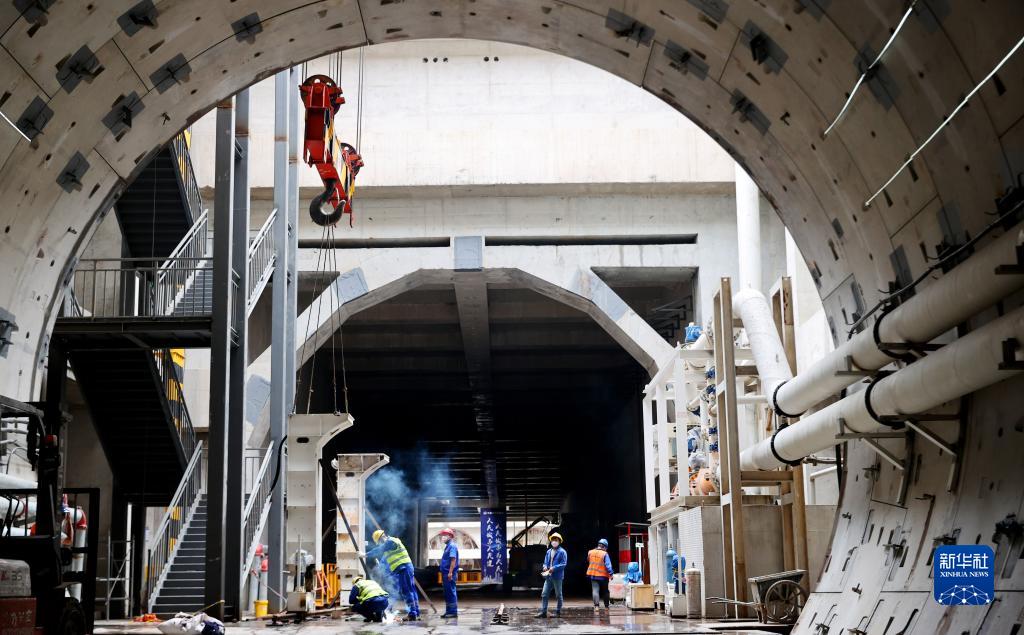 5月28日,在中铁隧道局机场联络线11标段施工现场,工人在转换井内施工。