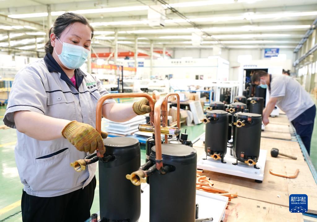 5月27日,工人在石家庄晋州一家制冷设备企业的生产车间工作。