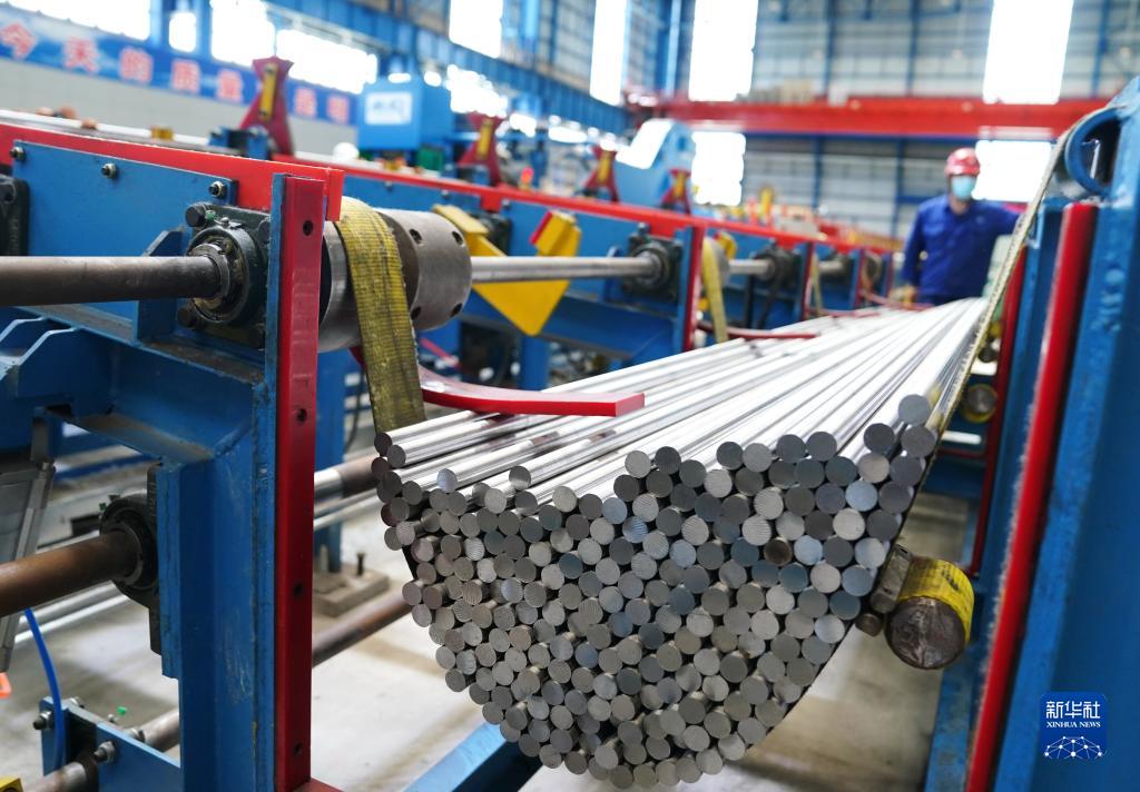 5月28日,工人在位于石家庄市井陉矿区的河钢集团石钢公司棒材银亮线车间工作。