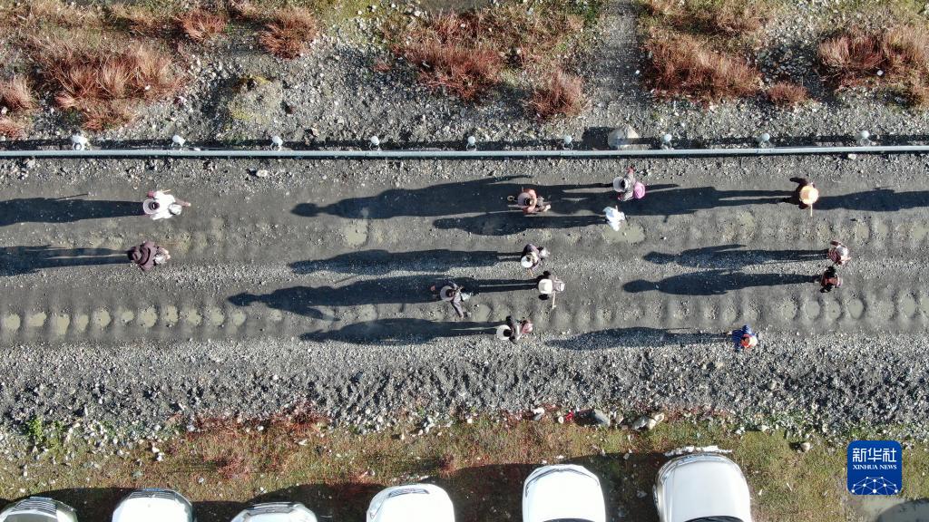 清晨,西藏那曲市比如县良曲乡然木塘村虫草采集点的人们统一前往山上采集虫草(5月26日摄)。
