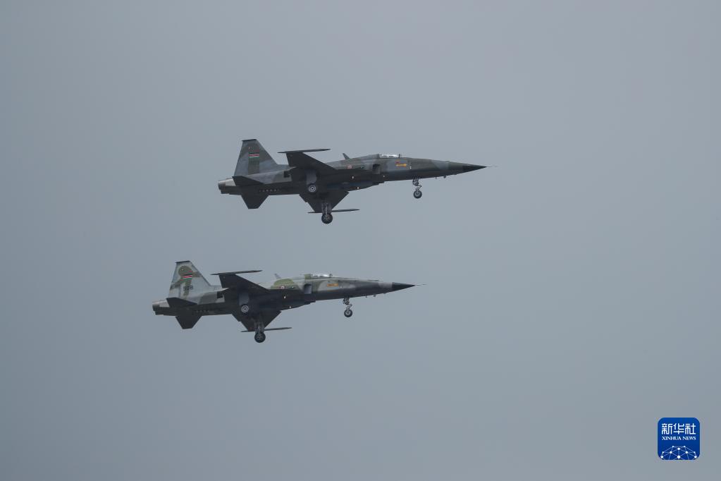 这是5月28日在肯尼亚内罗毕乌胡鲁花园拍摄的军用飞机飞行表演。