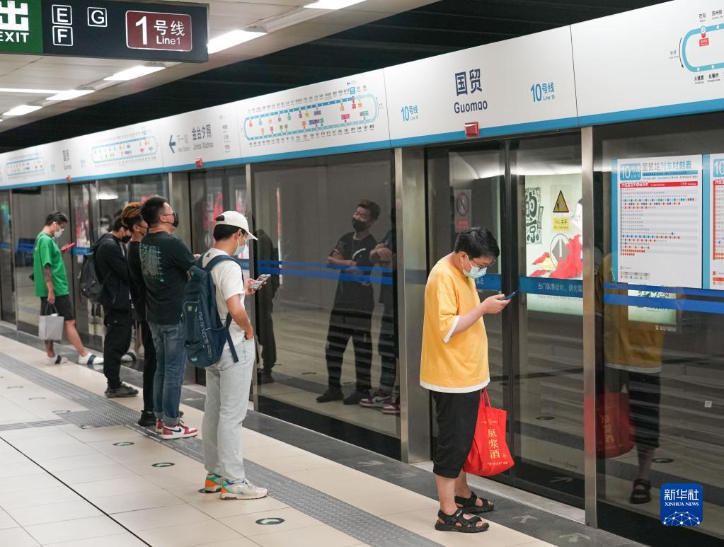 5月29日,市民在恢复运营的北京地铁国贸站候车。