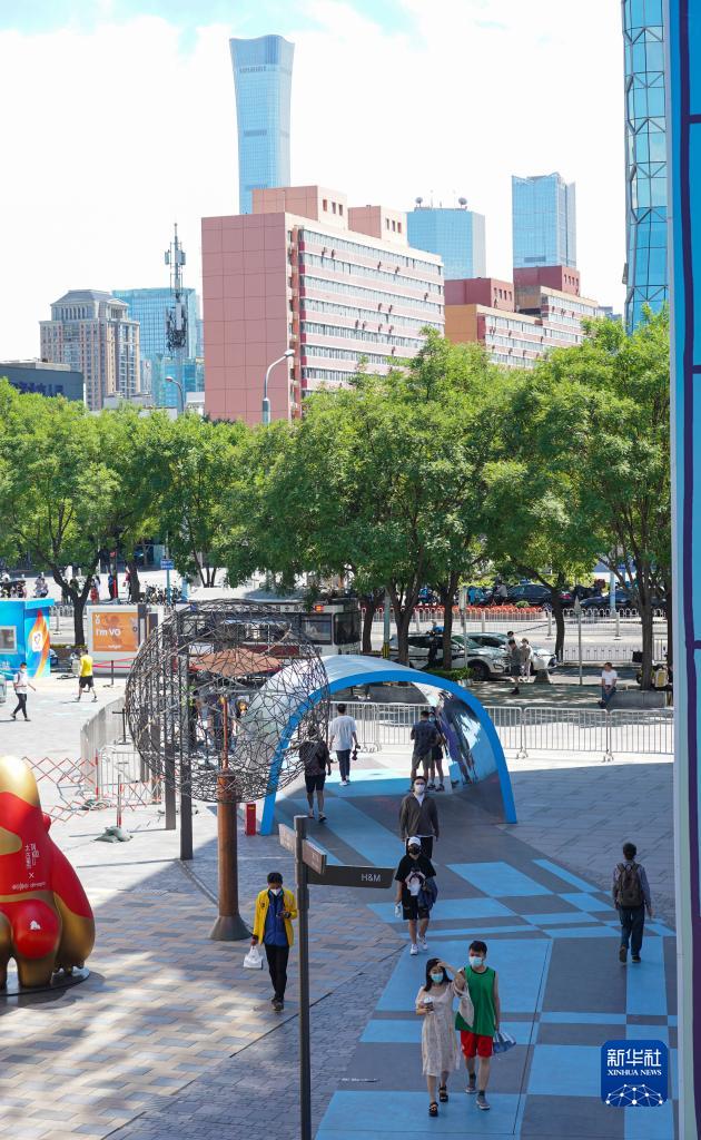 5月29日,市民在恢复营业的北京三里屯太古里逛街。