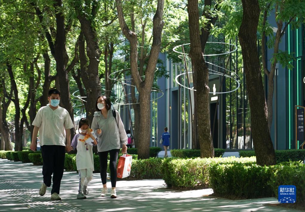 5月29日,市民走在位于北京三里屯商圈的三里屯路上。
