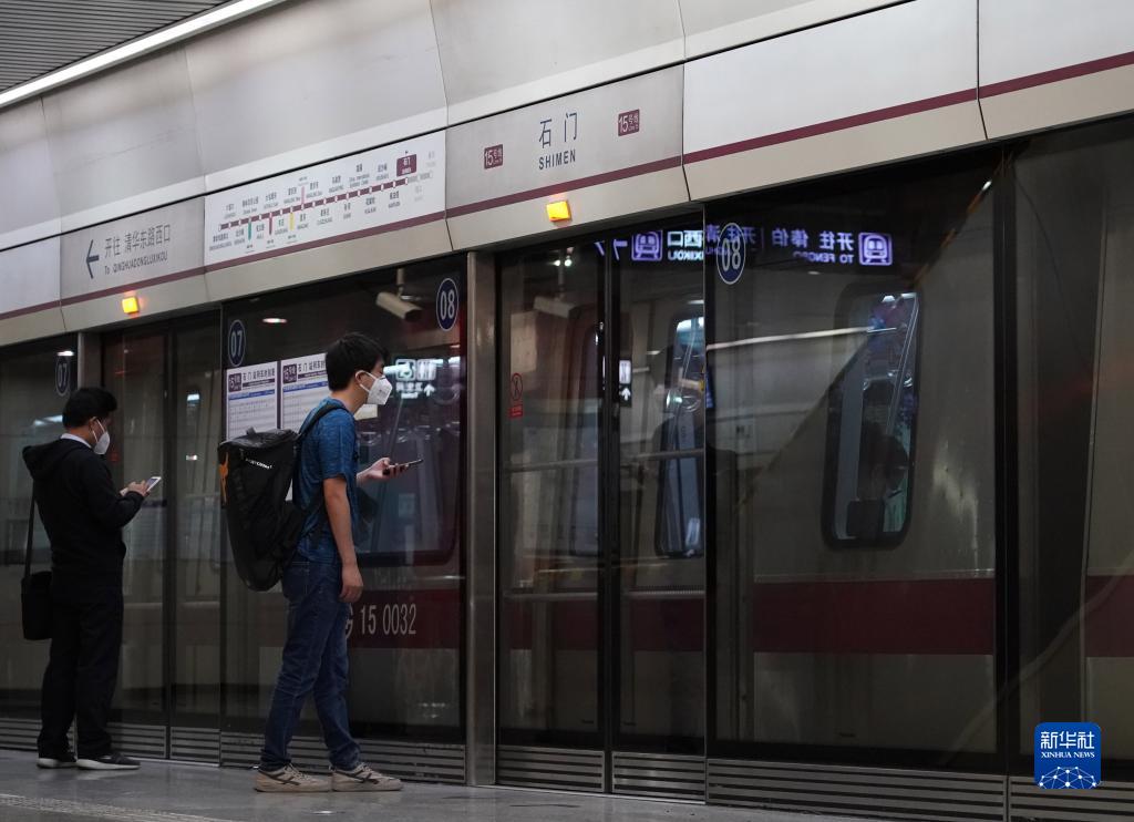 5月29日,在位于北京市顺义区的地铁15号线石门站,市民准备乘车。