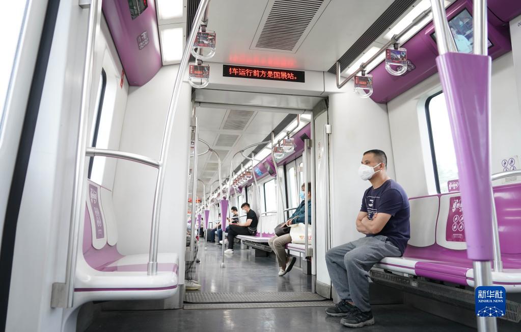 5月29日,人们乘坐北京地铁15号线列车到达顺义区国展站。