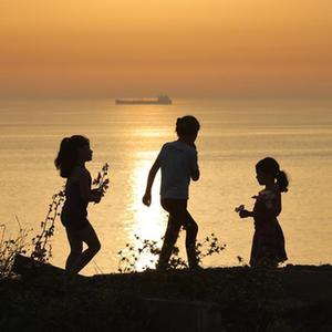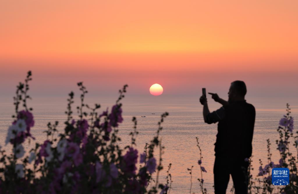 5月28日,一名男子在黎巴嫩贝鲁特的海边拍摄日落景色。