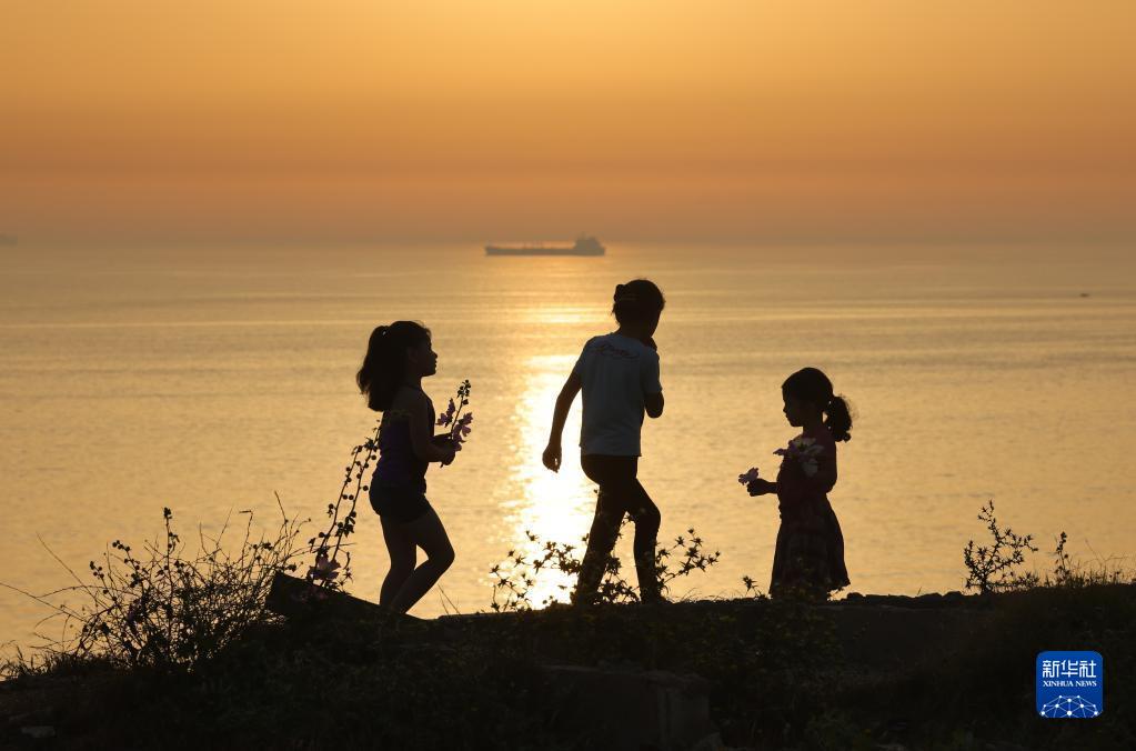 5月28日,在黎巴嫩贝鲁特的海边,人们在夕阳下休闲。