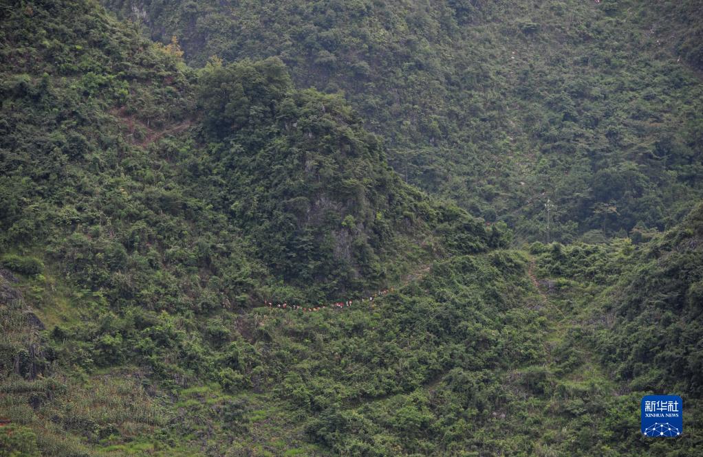 弄勇小学的学生背着各种生活用品走山路回家(2012年7月4日摄)。如今,弄勇村已实现屯屯通公路。
