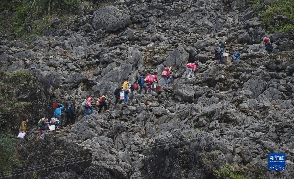 弄勇小学的学生走山路回家(2015年1月28日摄)。如今,弄勇村已实现屯屯通公路。