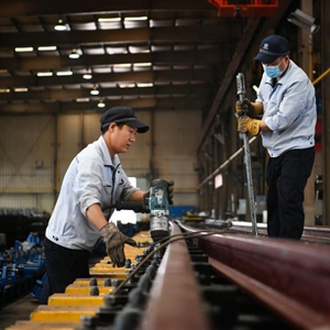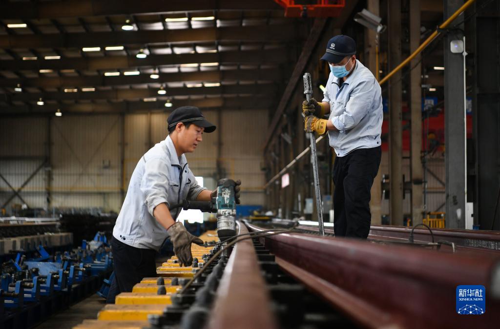 5月18日,工人在中铁宝桥集团有限公司生产车间工作。新华社记者 张博文 摄
