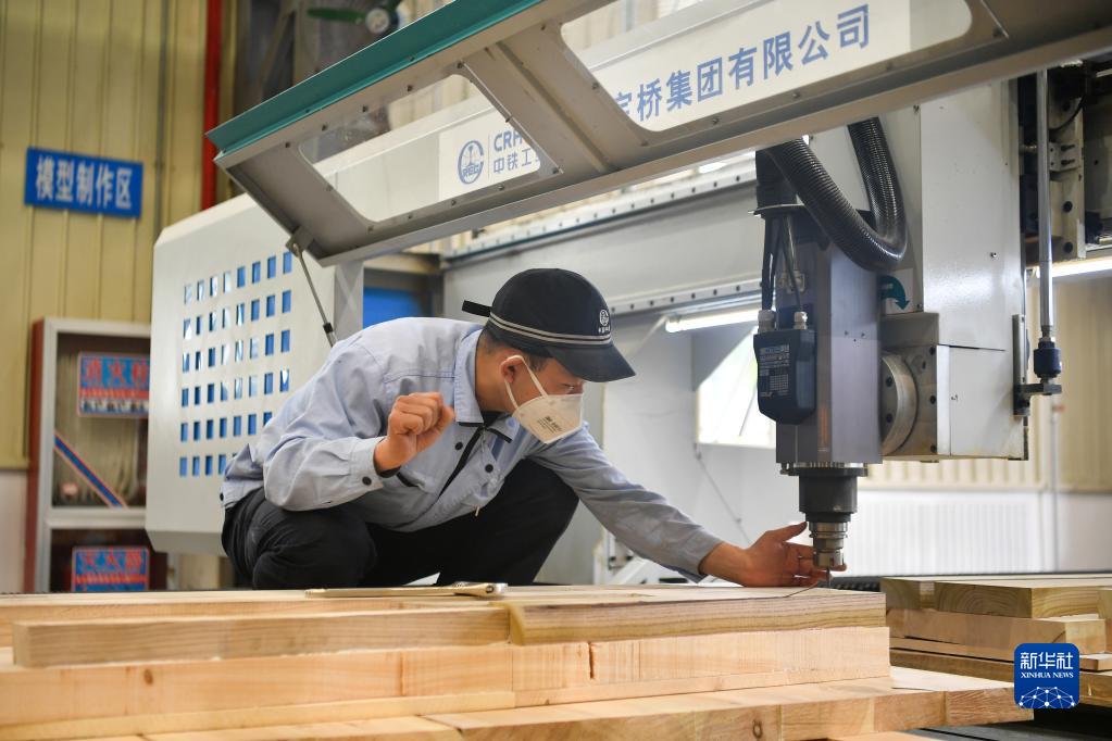 5月18日,工人在中铁宝桥集团有限公司生产车间工作。新华社记者 张博文 摄