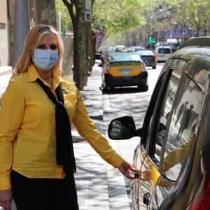 4月7日,在西班牙巴塞罗那,出租车司机洛拉·埃克斯波西托站在出租车旁。新华社发(伊斯梅尔·佩拉科拉摄)