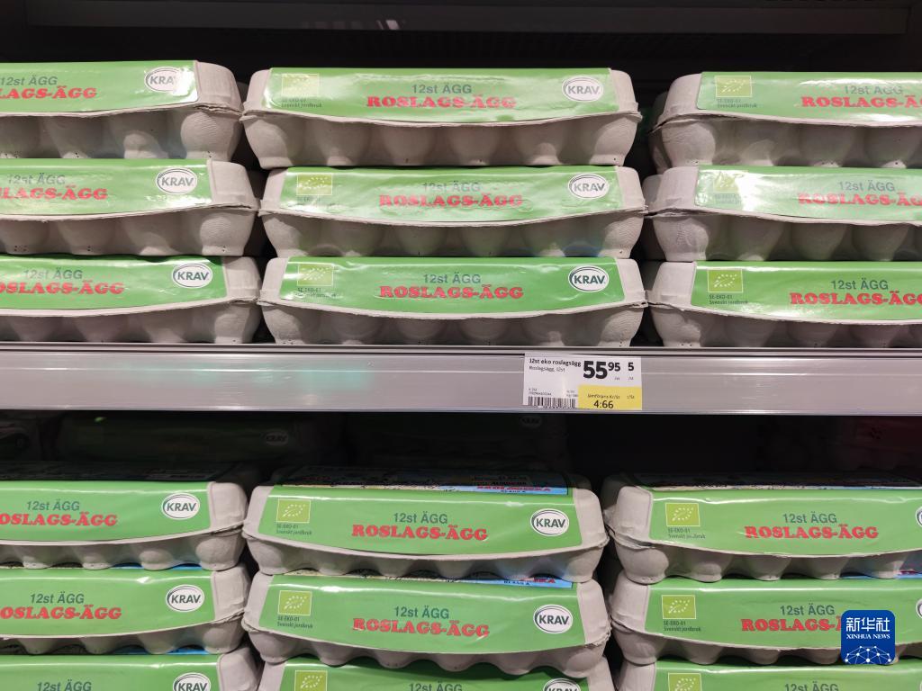 这是4月14日在瑞典斯德哥尔摩一家超市内拍摄的鸡蛋。