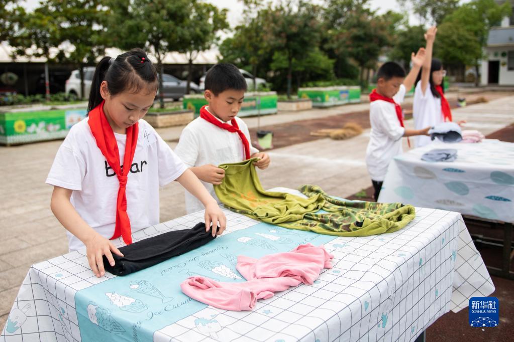 当日,湖南省常德市武陵区河洑镇汇华聚宝小学举行劳动技能竞赛,学生们通过比赛炒菜煮饭、叠衣服等技能,迎接“六一”儿童节。