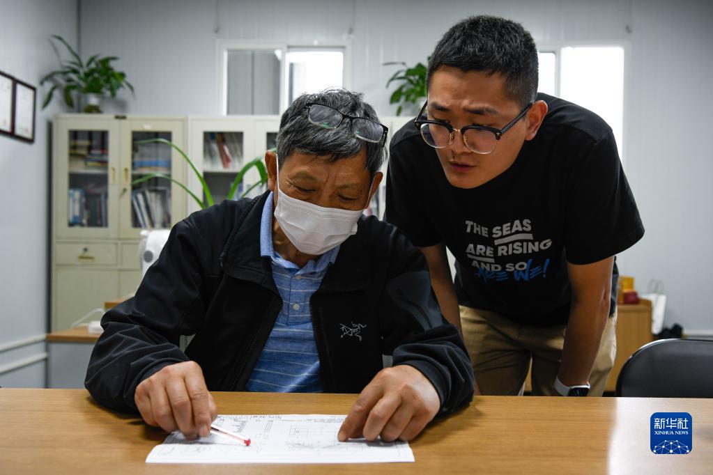 5月27日,黄正中(左)在装配车间内与团队成员讨论设计方案。新华社记者 胥冰洁 摄